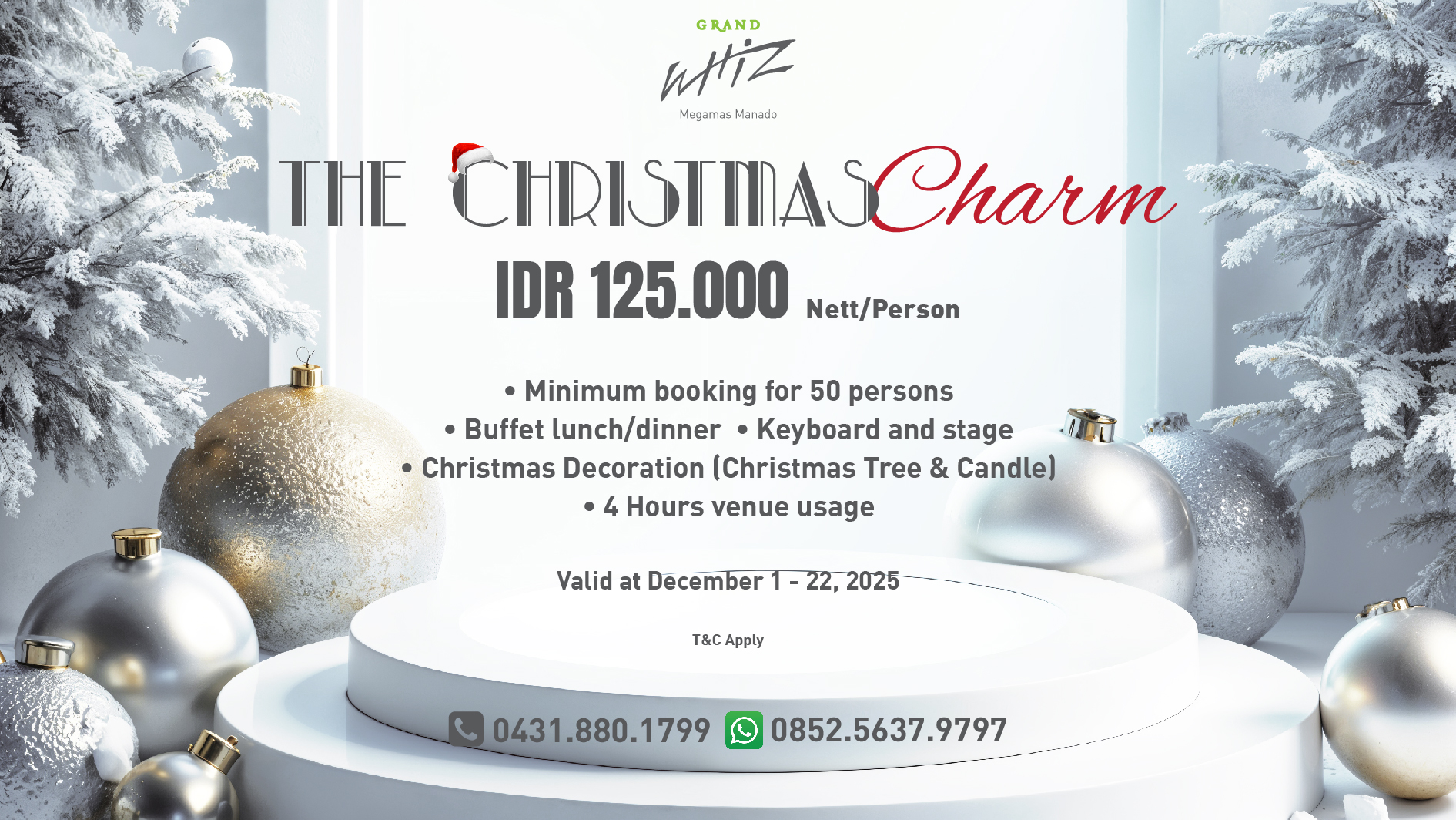 Grand Whiz Megamas Manado is easily found at Kawasan Megamas. Only 30 minutes from Manado's Sam Ratulangi International Airport. Connected to Mega Trade Centre Shopping Mall. Grand Whiz Megamas Manado is equipped with 118 rooms in modern setting with comfortable interior design. Located in the exclusive business Kawasan Megamas Manado, a well-known area for international events, the hotel is the right place for business and leisure travelers to spend their stay in Manado with high quality of services.